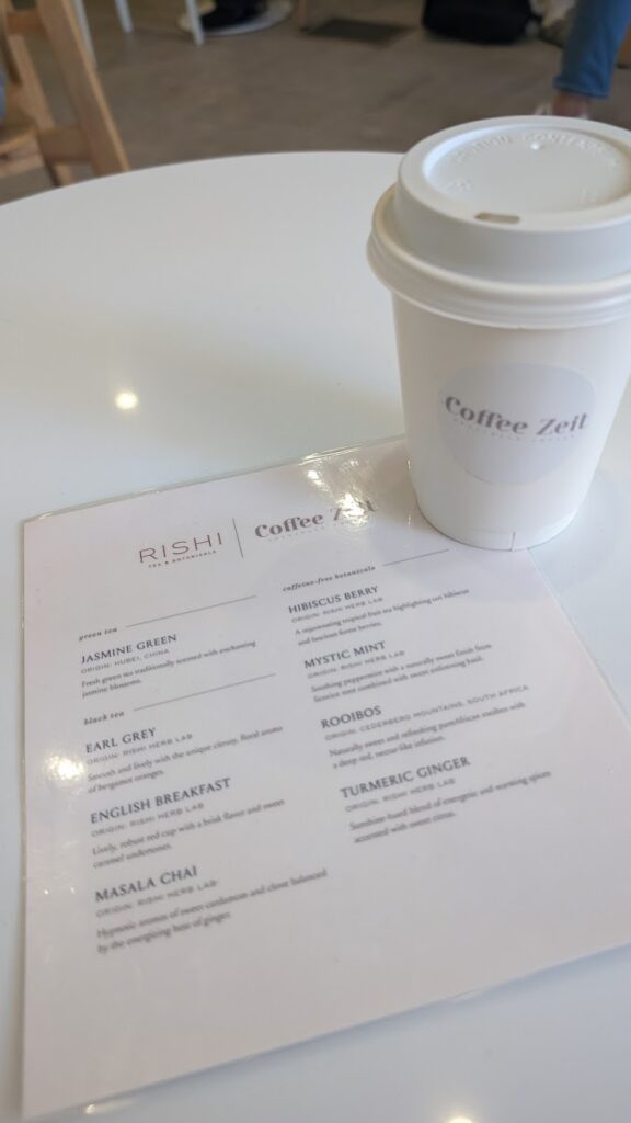 The menu at Coffee Zeit on 246 Race St, Philadelphia, PA 19106 is a delightful blend of craftsmanship and comfort, offering a well-curated selection that caters to both coffee enthusiasts and casual visitors. Starting with the Matcha Latte ($5.45), the café’s matcha creations are a highlight, especially the refreshing Iced Strawberry Matcha ($6.95) and Iced Mango Matcha ($6.95). For those who appreciate innovation, the Espresso Tonic ($5.25) and German Fall Toffee Latte ($6.65) are intriguing standouts among the specials, while classic staples like the Cold Brew ($4.95) and Salted Caramel Latte ($6.65) provide familiar comfort. Tea lovers will find an impressive range—from the fragrant Jasmine Green, sourced from Hubei, China, to the robust Earl Grey and warming Masala Chai, all crafted with premium origins. The caffeine-free section, including Hibiscus Berry, Mystic Mint, and Rooibos, adds a soothing balance for those seeking something light and refreshing. Coffee connoisseurs will appreciate the detailed selection of pourovers, such as the Rwanda Shyira Red Bourbon with hints of tangerine and honey, or the Colombia El Placer Pink Bourbon, known for its lychee and cocoa notes. Pastries and snacks complement the drinks perfectly, from the buttery Pain Au Chocolat ($4.45) and Butter Croissant ($3.95) to the savory Spinach Feta ($4.95) and Leek Parmesan ($4.95). The sweet options like Berry Parfait ($6.95), Blueberry Crumble ($5.25), and vegan Berry Overnight ($6.95) make it easy to indulge. Whether you’re enjoying a simple Espresso ($3.15), a creamy Flat White ($4.75), or experimenting with custom add-ons like Extra Shot ($1.00) and Syrup ($0.50), every sip feels thoughtfully crafted. Overall, Coffee Zeit’s menu combines European-inspired finesse with local warmth, creating a place where every drink and bite tells its own flavorful story.